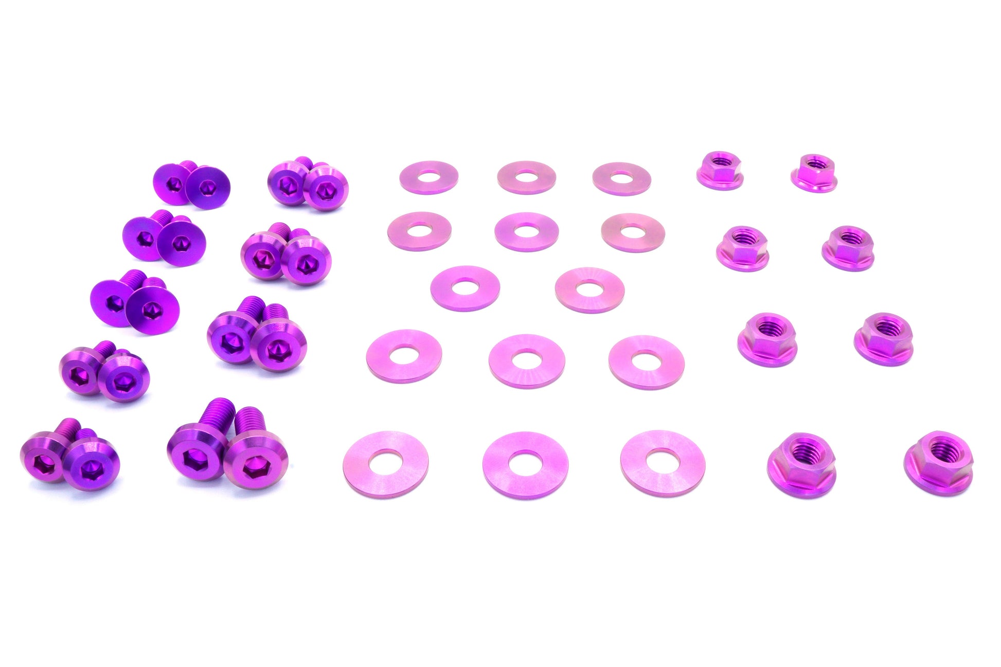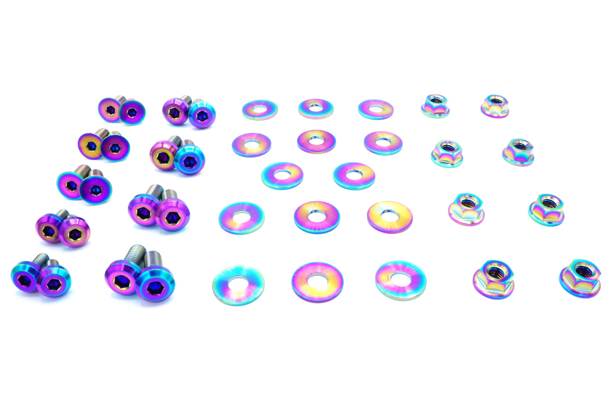 This 40 piece kit includes bolts and washers manufactured from extremely durable, anticorrosive, and lightweight GR5 titanium metal.
