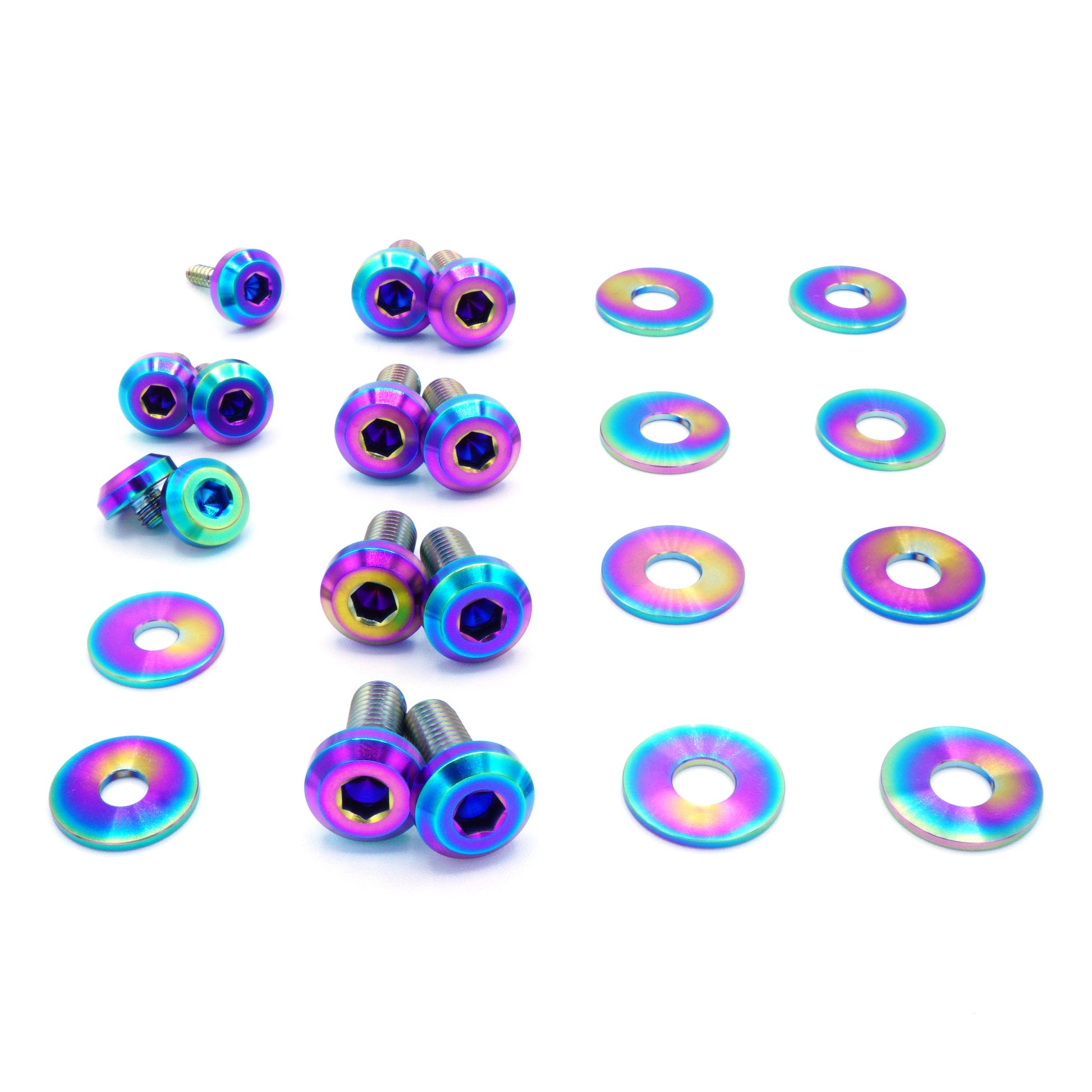 This 23 piece kit includes nuts, and washers manufactured from extremely durable, anticorrosive, and lightweight GR5 titanium metal.