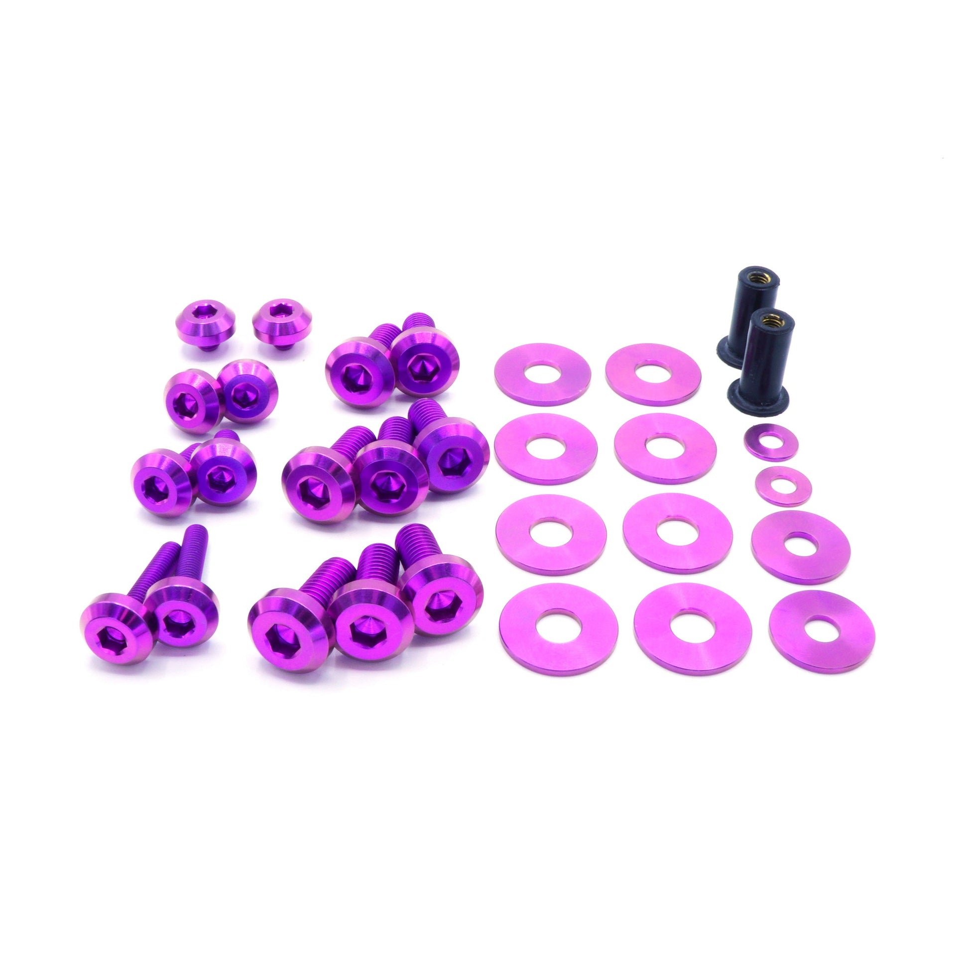 This 30 piece kit includes bolts, nuts, and washers manufactured from extremely durable, anticorrosive, and lightweight GR5 titanium metal.